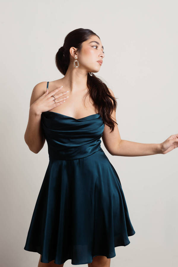 Isabelle Cowl Neck Skater Mini Dress - Emerald