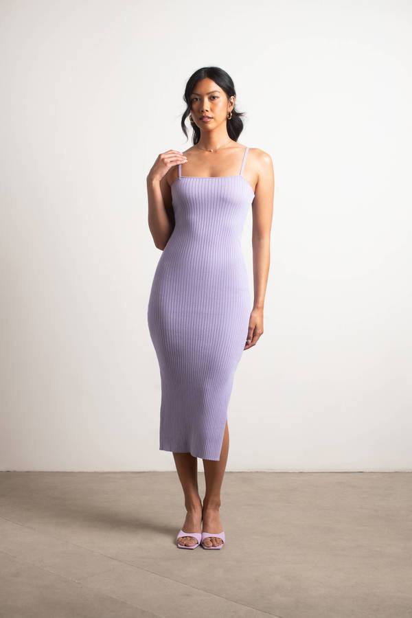 Shimmer Curve Sequin Mesh Midi Dress - Lavender