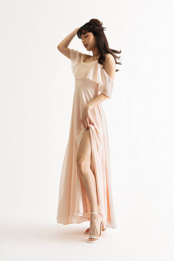 Charlene Off the Shoulder Slit Maxi Dress - Cream