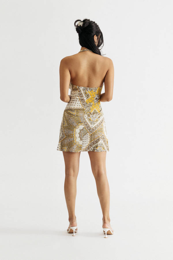 Check out Tobi's Summer Time Fine Bandana Halter Cut Out Mini Dress