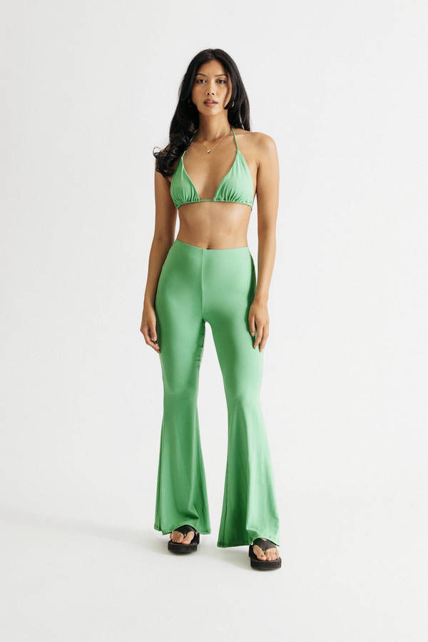 This Minga Bikini Top and Flared Pants Set give you the best of both worlds. The halter bikini top is perfect for getting a little sun, while the flared pants got you covered. The best part is that both pieces coordinate perfectly, so you can mix and match as you please. With adjustable halter ties, you can customize the fit of this set to your liking. Whether you're lounging by the pool or walking on the beach, you'll be sure to turn heads in this matching top and bottom set.