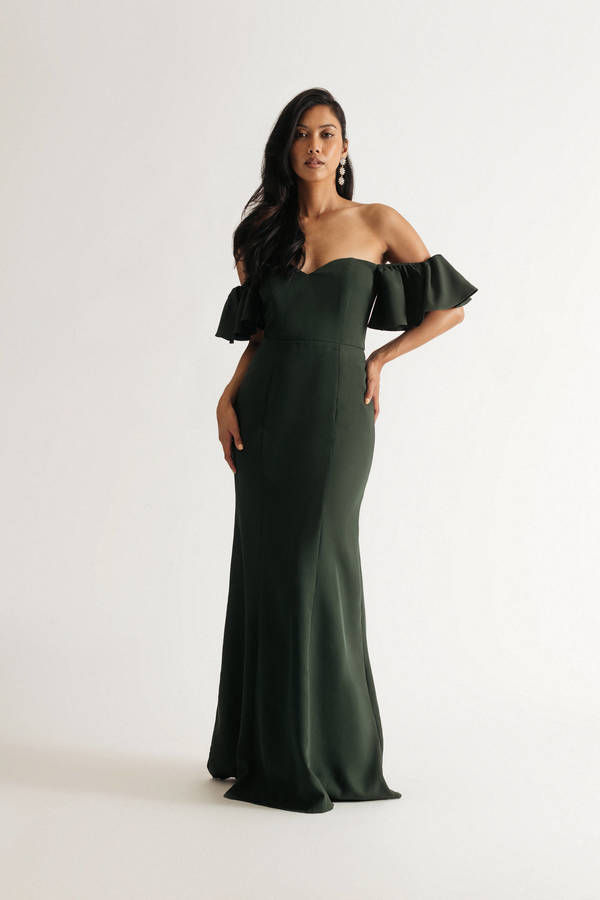 Alara Ruffle Off the Shoulder Maxi Dress - Emerald