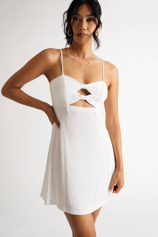 Maira Off White Ribbed Bow Tie Cutout Mini Dress