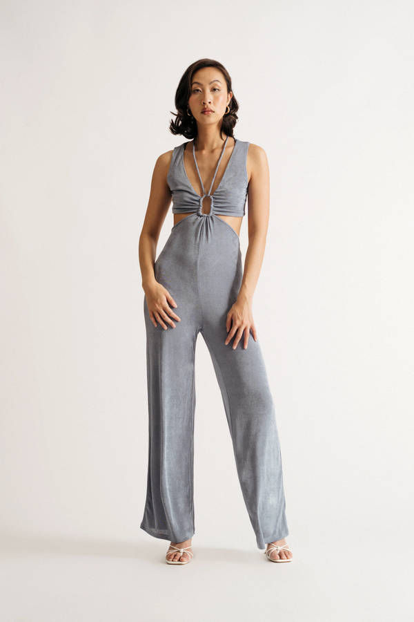 Smart Move Gold Trim Halter Jumpsuit - Black