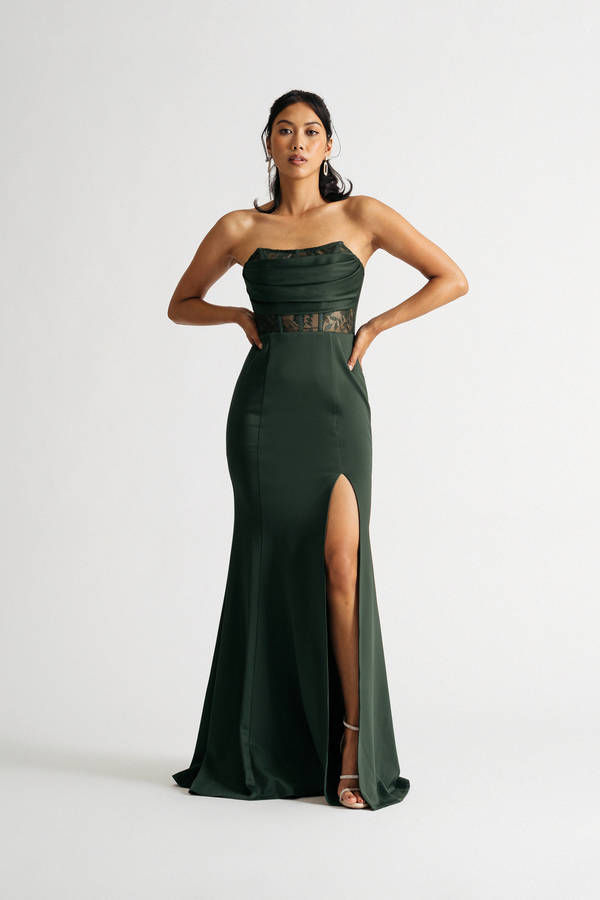 Sabrina Emerald Strapless Lace Satin Slit Maxi Dress