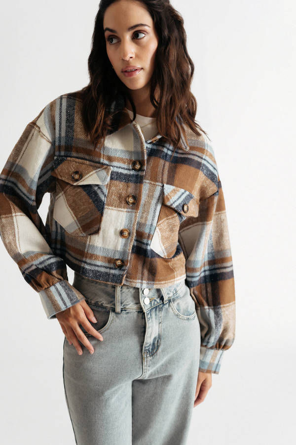 Fall in love with the With Ease Brown Multi Cropped Plaid Jacket. With a versatile and stylish design, this piece is perfect for dressing up or down whatever the day brings. Made from a soft and lightweight fabric, this jacket will keep you comfortable all autumn long. Add it to your wardrobe and love it forever!