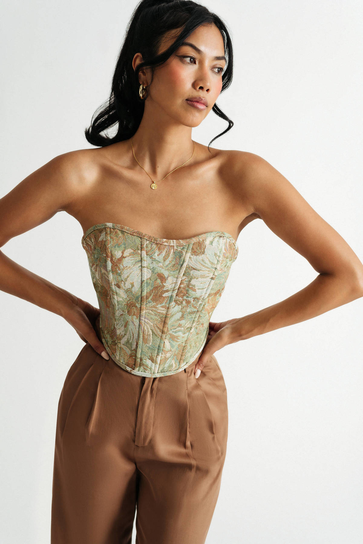 Florencia Sage Multi Floral Lace-Up Corset Bustier Top
