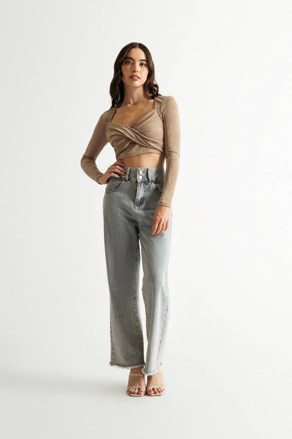 Stay in style all season with our must-have Falling For You Mocha Slinky Twist Crop Top. Get wrapped up in our slinky twist crop top. With long sleeves and a deep v neckline, this top is perfect for layering or wearing on its own. Its figure-hugging fit will have you falling for it all season long. Pair this top with your favorite jeans or leggings for a night out on the town, or wear it to the office with a blazer for a chic look.