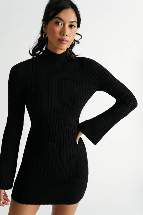 Show some skin in the Miya Black Open Back Long Sleeve Sweater Mini Dress. The long sleeve, mock neck design keeps you covered while the cut outs and open back add a touch of sexiness. The tight bodycon fit hugs all your curves in all the right places. Whether you're headed to the office or a night out on the town, this dress is sure to turn heads.