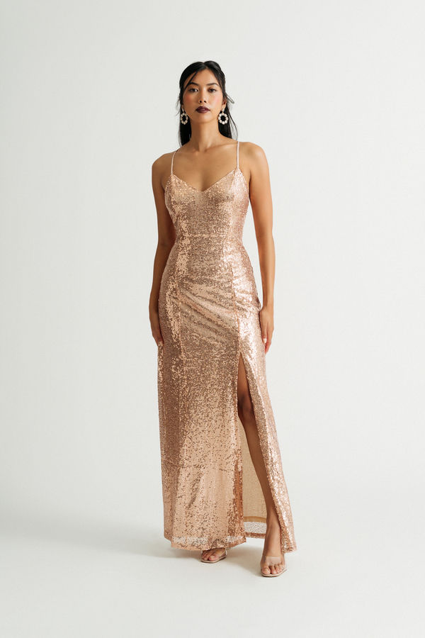 Quincy Sequin Slit Maxi Dress - Rose Gold
