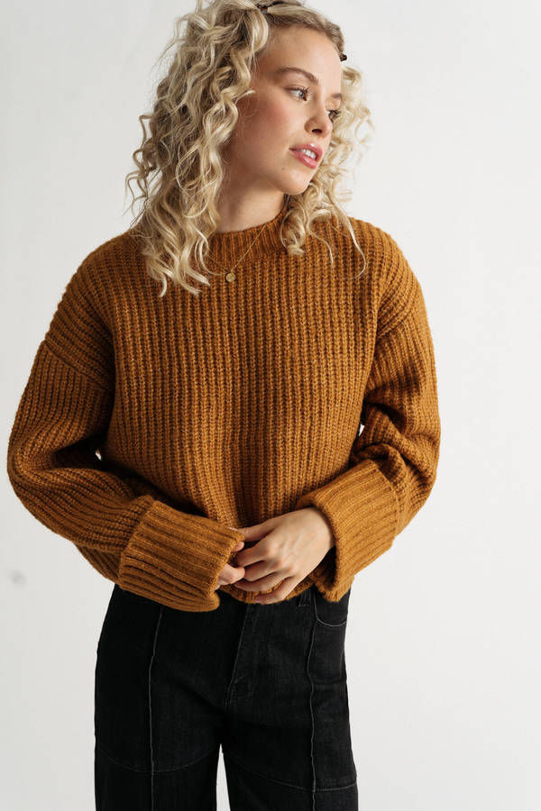 There's no need to put up a front with the Chill Over Here Camel Long Sleeve Sweater. This long sleeve top is designed with a relaxed and comfortable fit. The crew neck and extra long sleeves make it perfect for layering over your favorite tank top or cami. The loose knit sweater is perfect for keeping you warm on those chilly days or nights.