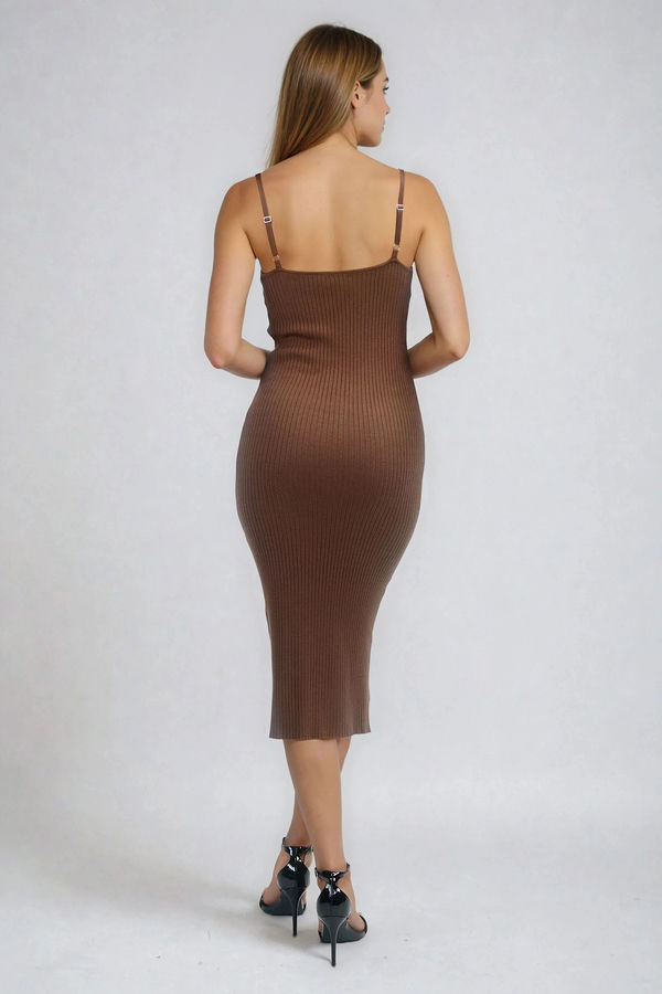 This Fall Touch Mocha Ribbed Bodycon Midi Dress is made of a soft jersey knit material that will hug your curves in all the right places. The spaghetti straps and square neckline add a touch of sophistication, while the ribbed texture keeps it fun and youthful. Whether you're headed to the office or out on a date, this is the perfect dress to take you from day to night.