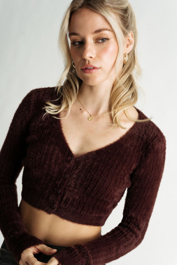 Snuggle into style with the Brit Sweater Cardigan in Brown! This fuzzy knit beauty features a classic front button closure and a playful cropped fit that's perfect for layering over your favorite outfits. Its cozy texture adds a touch of whimsy and warmth, making it ideal for any season. Whether you're heading out or just chilling in style, this cardigan is your go-to for a fabulous and comfy look!