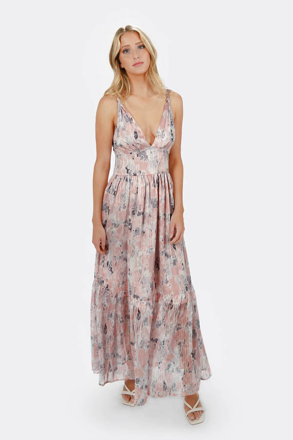 Hilde Floral Plunging Maxi Dress - Pink/Gray