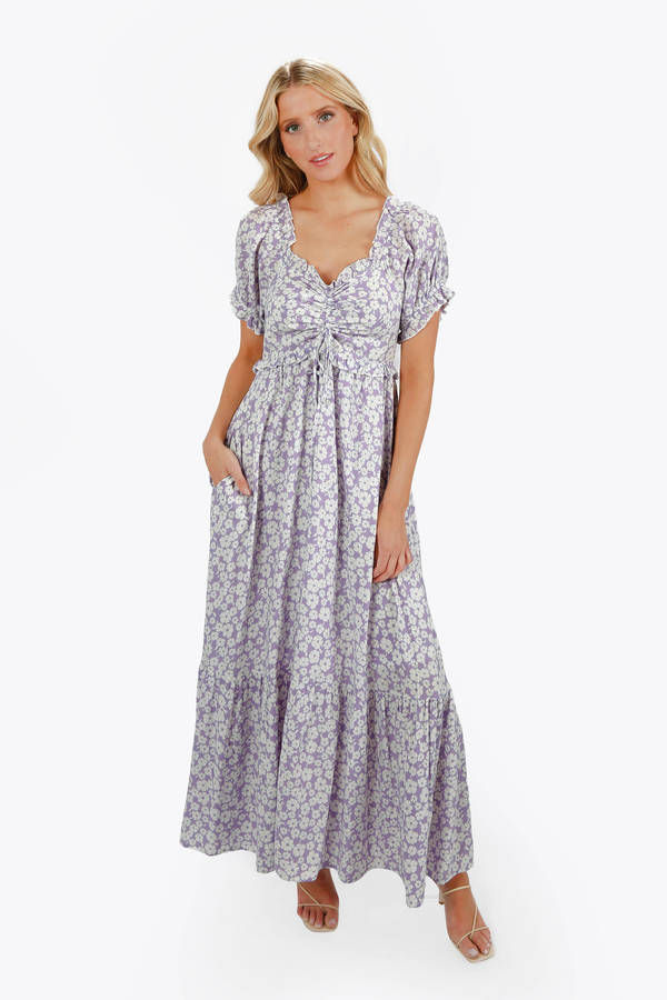 Jillian Floral Ruffle Maxi Dress - Lavender