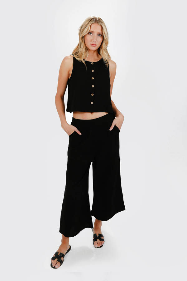 Nielle Linen Tank Top and Pants Set - Black