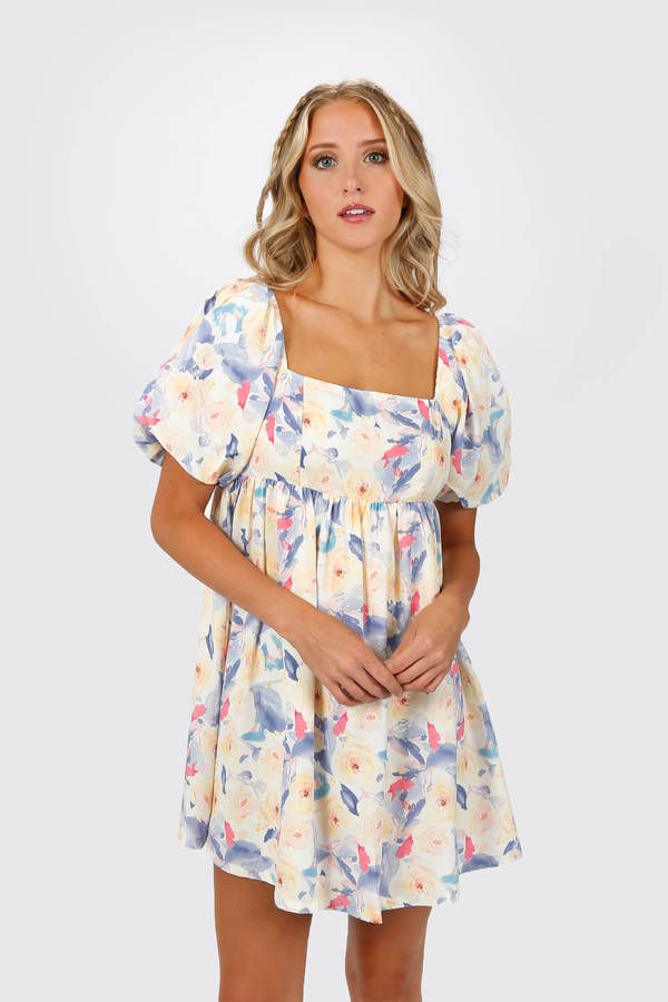 Anne Marie Floral Babydoll Mini Dress - Blue Multi