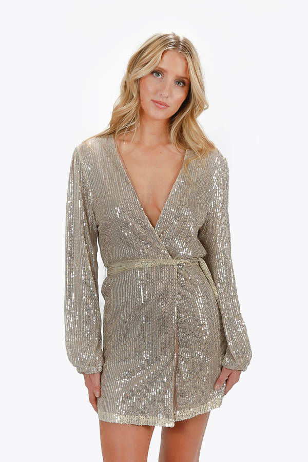 Charlotta Sequin Surplice Mini Dress - Champagne