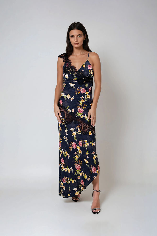 Love on Me Asymmetrical Floral Midi Dress - Black