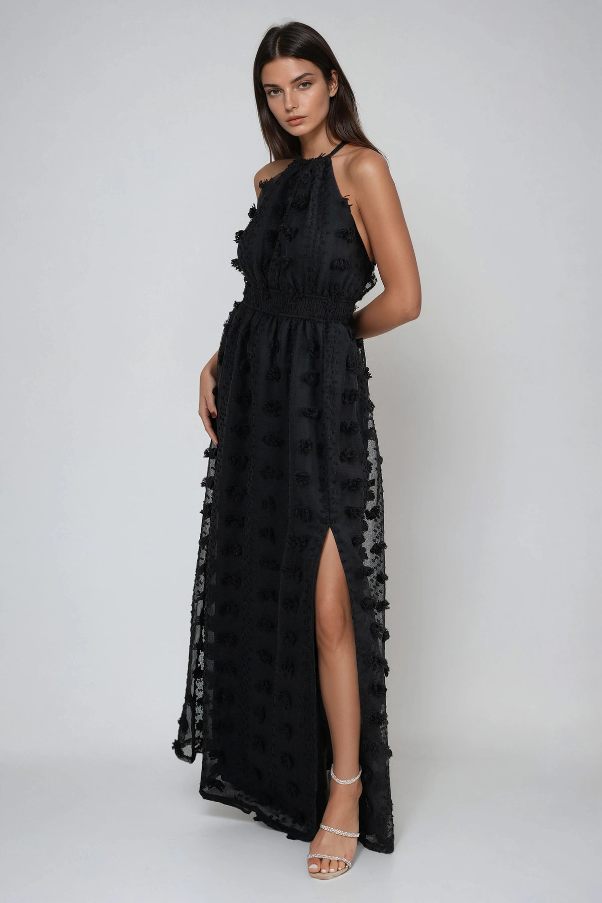 Step into the scene in the Thorn Kiss Floral Smocked Waist Maxi Dress in Black, where romantic floral texture meets a flattering smocked waist for an effortlessly feminine silhouette. Designed to bloom after dark, it’s perfect for garden parties, weddings, or any moment that calls for soft drama. Style with strappy heels and your boldest mood.