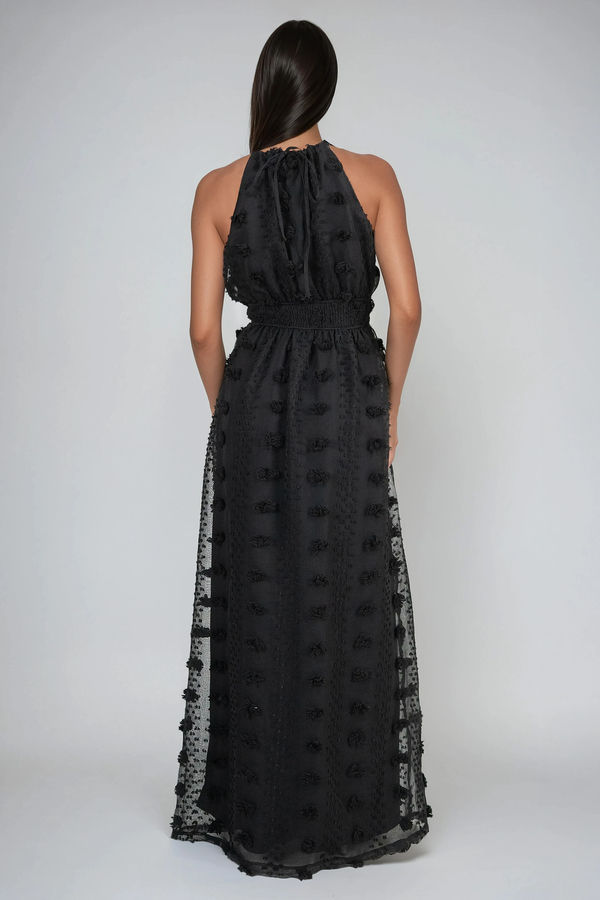 Thorn Kiss Floral Smocked Waist Maxi Dress - Black