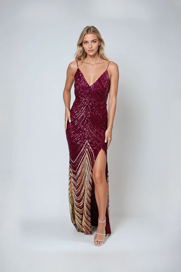 Moonlit Daze Ombré Sequin Maxi Dress - Maroon