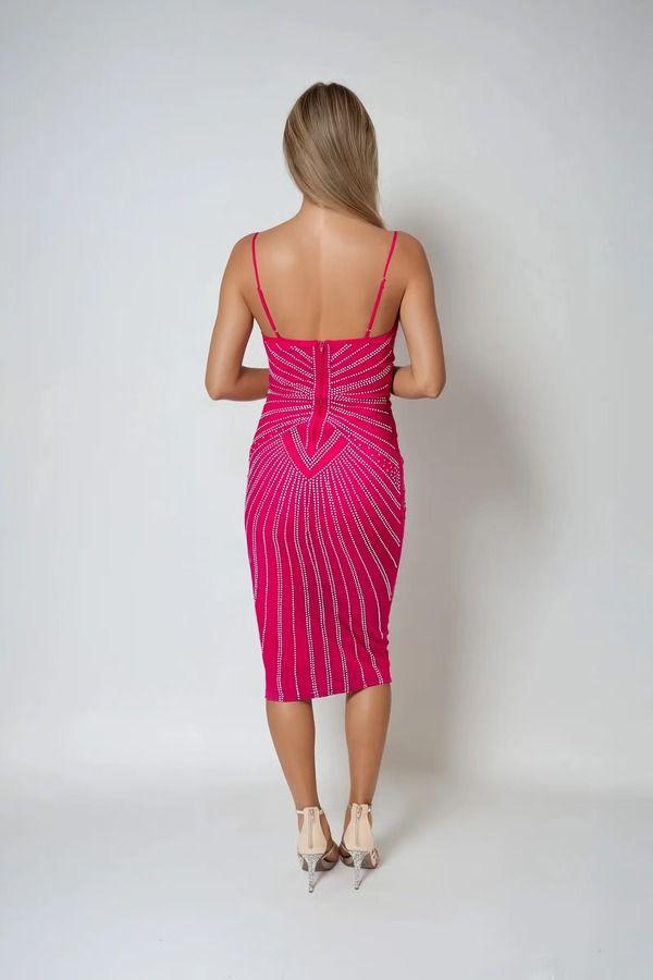 Kiss and Tell Plunging Rhinestone Midi Dress - Fuchsia