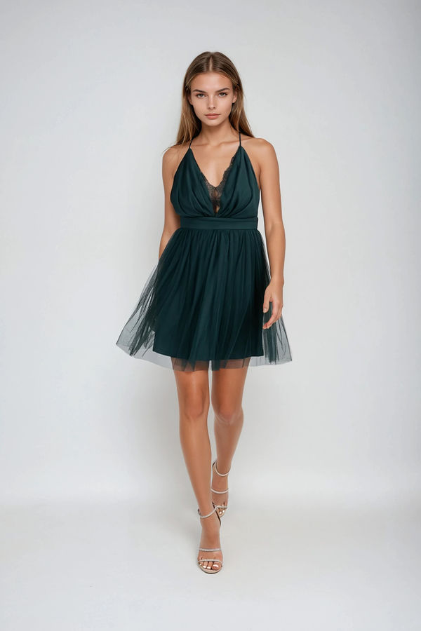 Silken Fire Plunging Tulle Mini Dress - Emerald
