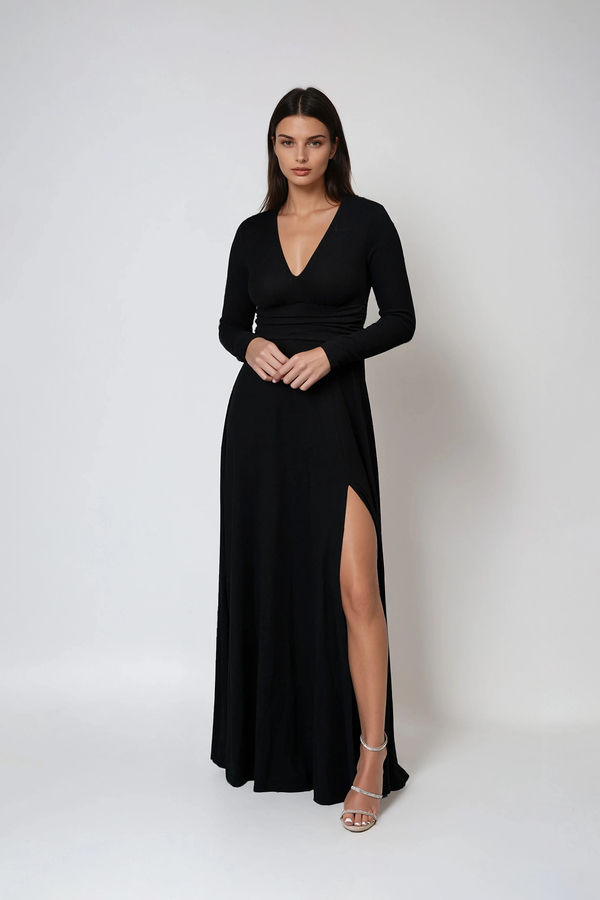 Evermore Elegance Long Sleeve Slit Maxi Dress - Black