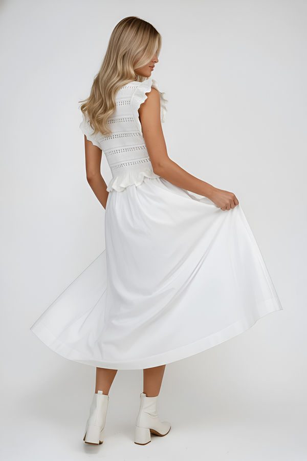 Fall in love all over again in the Still Into You Crochet Ruffle Maxi Dress Off White. With sweet ruffle-trimmed sleeves, a delicate crochet bodice, and a full midi skirt that twirls with every step, this dress is made for soft afternoons and slow Sundays. Whether you’re headed to brunch, garden parties, or a summer stroll, this one has “romantic favorite” written all over it.