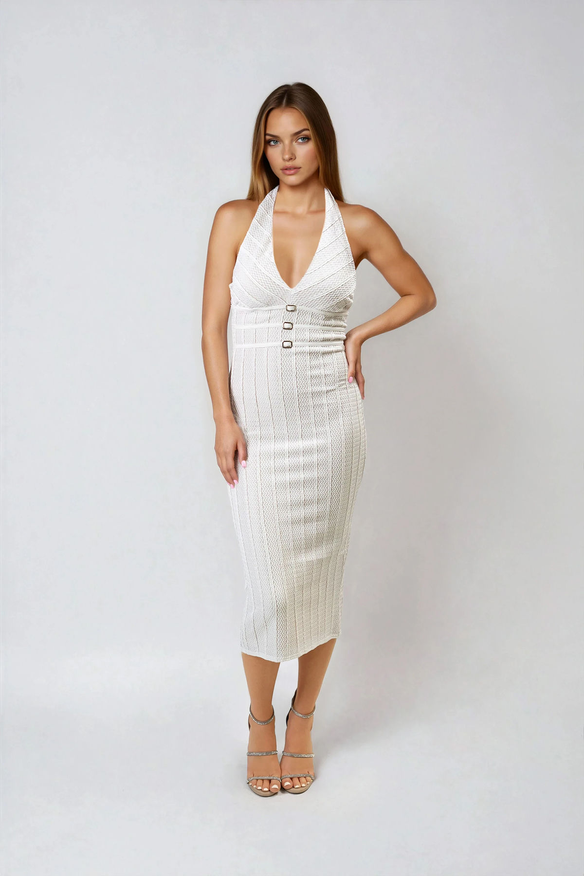 Dangerously Chic Halter Bodycon Midi Dress - Ivory