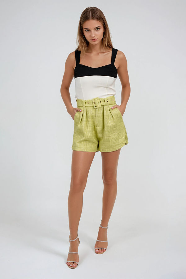 Cool Intentions Belted Tweed Shorts - Pale Lime