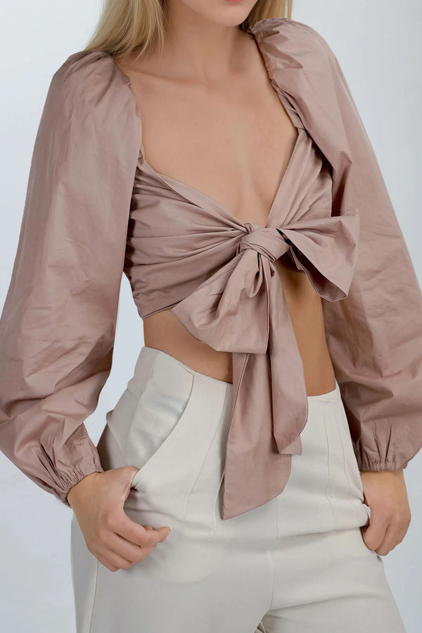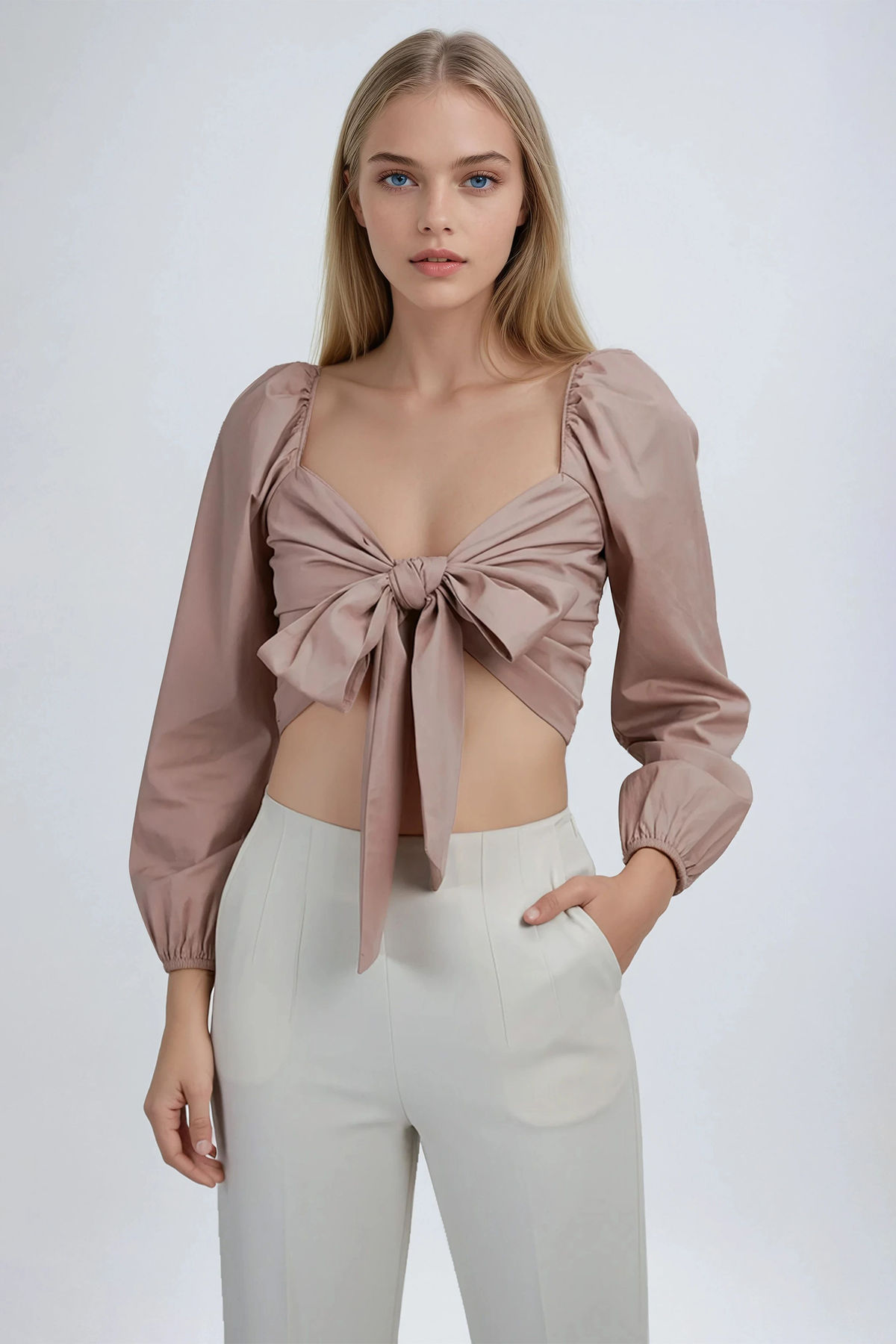 Turn charm into your power move with the Make Them Blush Puff Shoulder Blouse in Mauve. This long sleeve crop top features playful puff shoulders, a smocked back for comfort, and a dramatic self-tie front that can be styled multiple ways. Flirty yet versatile, it’s the ultimate statement piece to pair with high-waisted denim or a sleek skirt. Tie it up, switch it around, and wear it your way—because one look is never enough.
