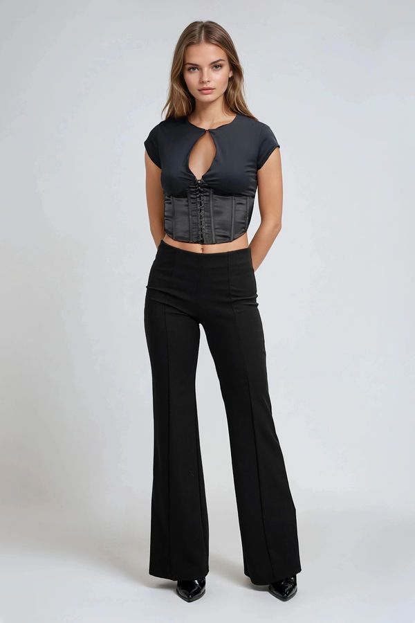 Turn heads in the Edgy Allure Satin Corset Top in Black is the perfect blend of bold and chic. Designed with a sleek satin corset bodice, front hook-and-eye closures, and a flattering cropped cut, it gives you that snatched silhouette while keeping it effortlessly cool. With its edgy keyhole neckline and modern fit, this top pairs seamlessly with high-waist pants or skirts for a night out. Fierce, fun, and fashion-forward – this is your new go-to statement piece.