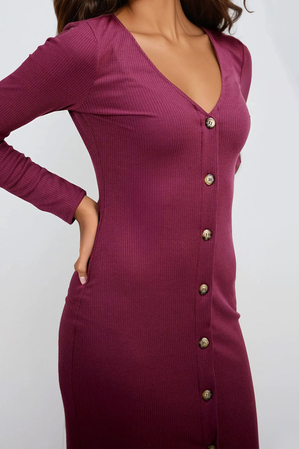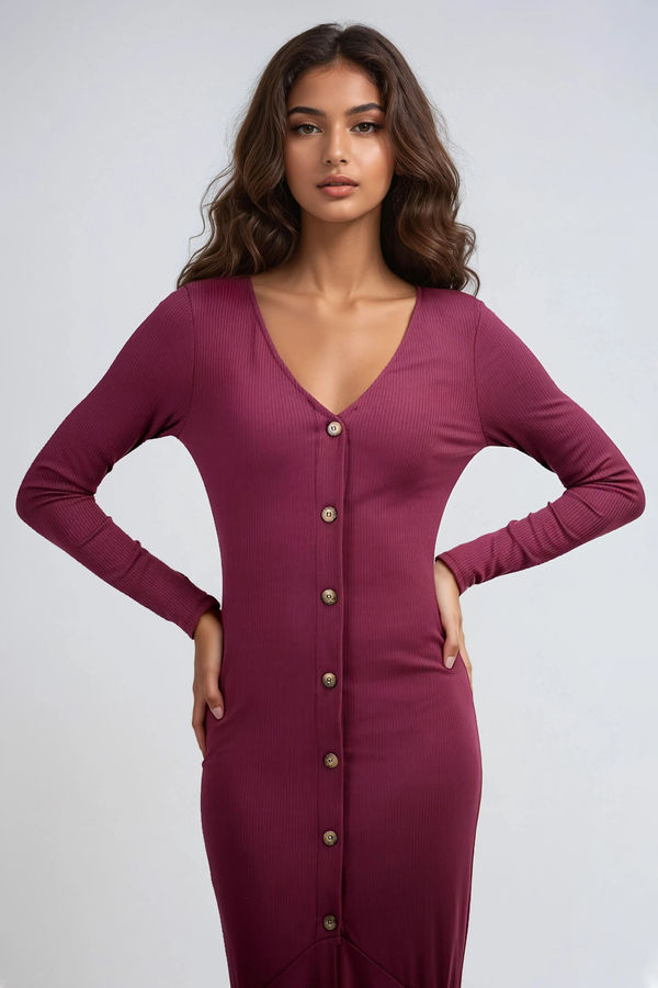 Channel timeless elegance with the Classic Charm Button Down Mermaid Maxi Dress in Wine. Designed with a ribbed knit, chic button-down front, and a flirty mermaid hem, it blends everyday ease with elevated style. The sleek silhouette hugs in all the right places while the front slit adds playful movement. Perfect for dinner dates, weekend outings, or dressed-up workdays, this piece is your go-to for versatile sophistication.