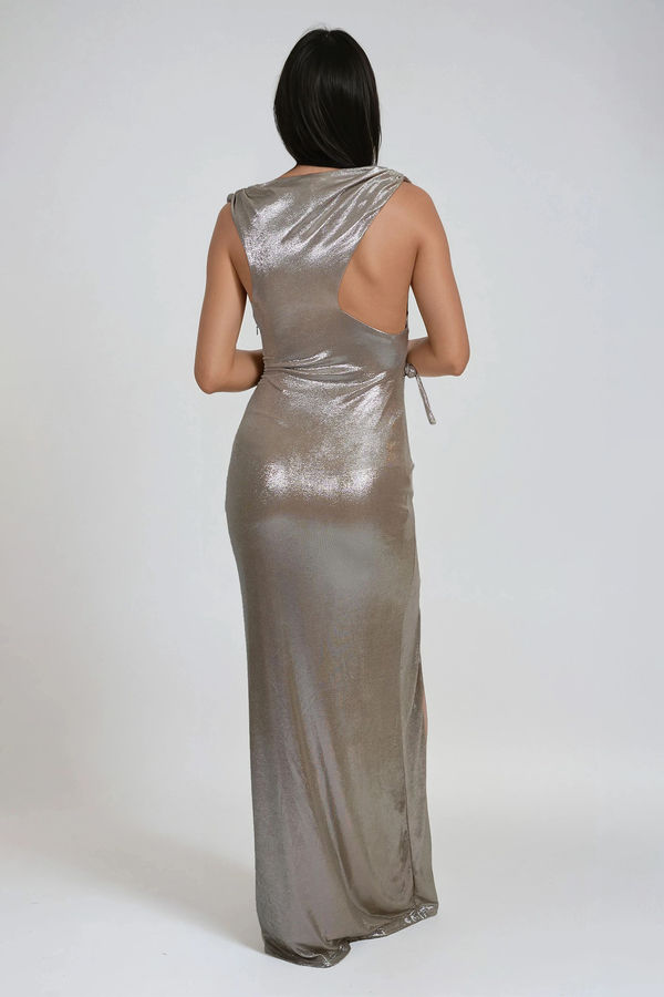 Lustrous Charm Cowl Slit Maxi Dress - Champagne