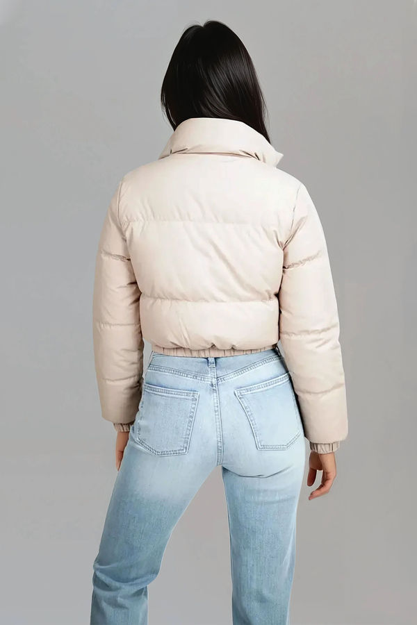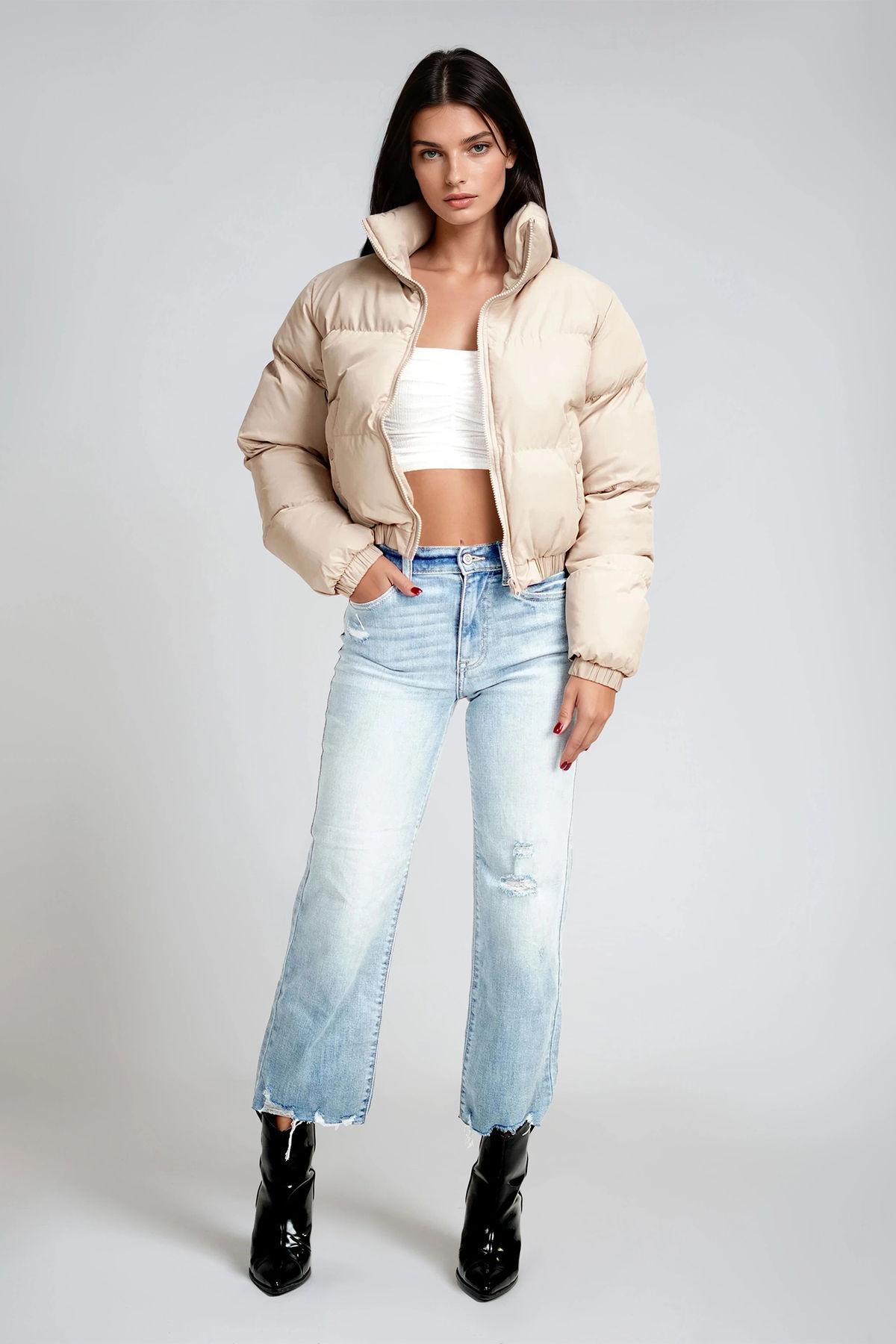 Sleek Chill Cropped Puffer Jacket - Taupe