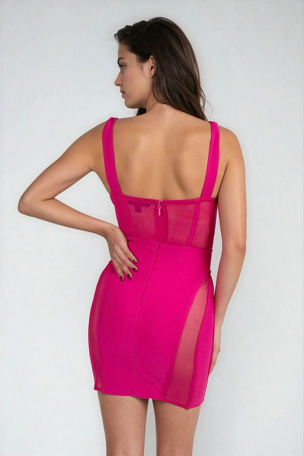 Fierce Aura Mesh Bodycon Mini Dress - Fuchsia