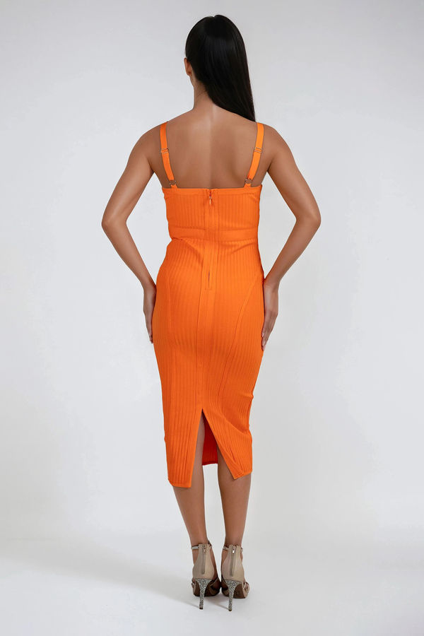 Bold Essence Ribbed Bodycon Midi Dress - Orange