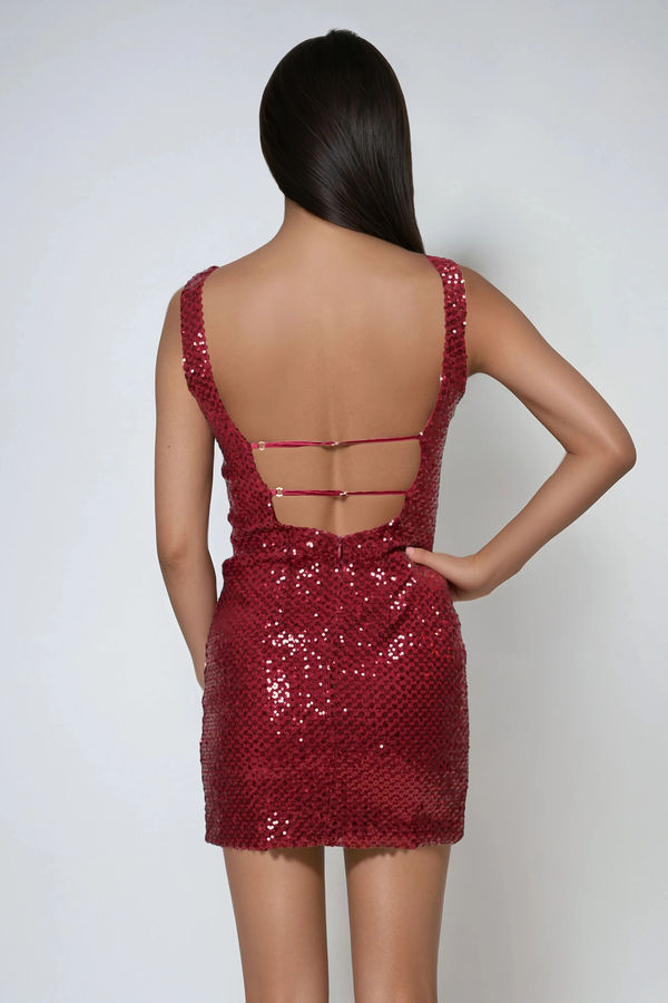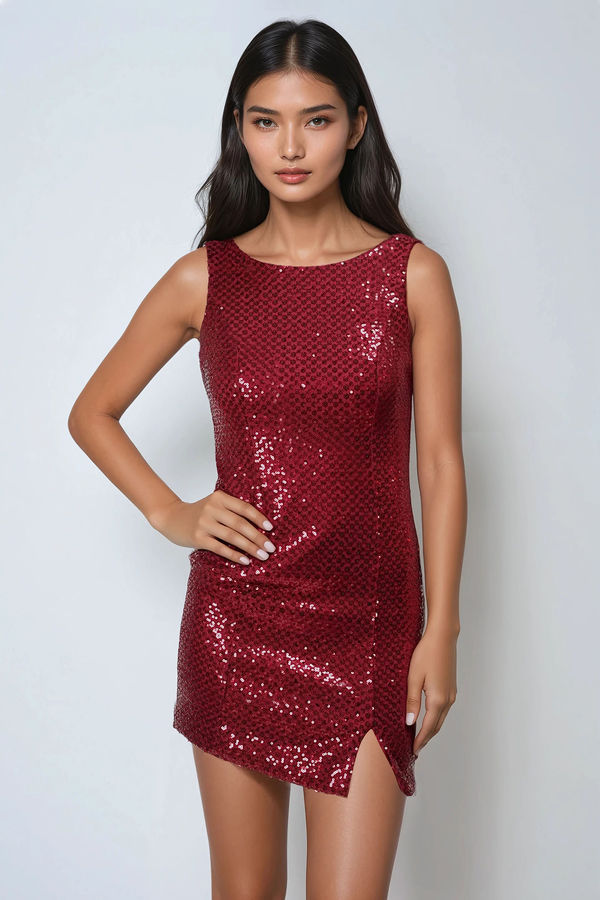 Radiate confidence in our Love Spell Boatneck Sequin Mini Dress in Wine! This dazzling sleeveless number features a sophisticated boat neck front and a sultry open back with chic strap details. The all-over sparkle and playful side slit make it perfect for holiday parties, a romantic dinner date, or any special event where you want to feel effortlessly glamorous.