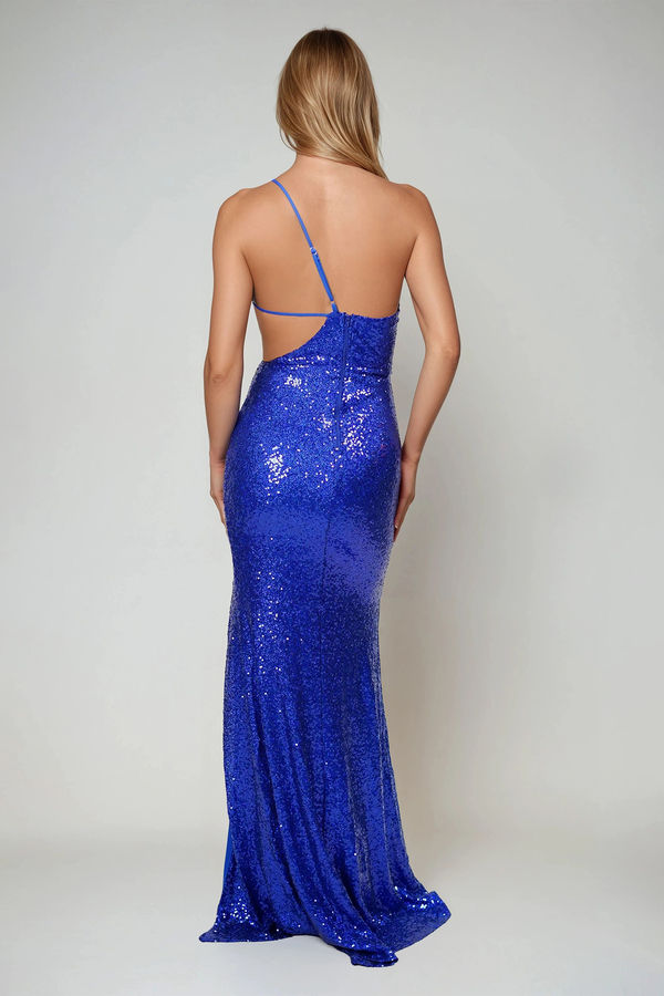 Flirty Wink One Shoulder Sequin Maxi Dress - Royal
