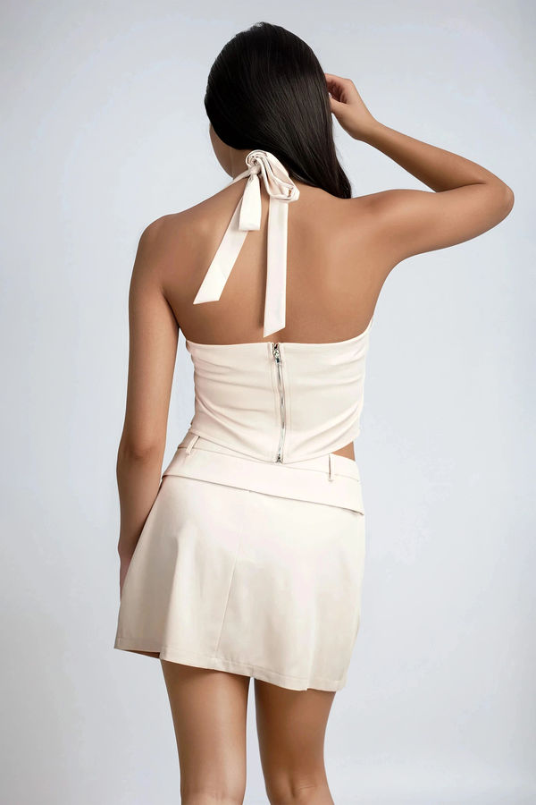 Serve major runway vibes in the Runway Ready Halter Top in Stone Beige. With a sleek halter neckline and structured fit that sculpts your frame, this top is made to flatter from every angle. Perfect for nights out or elevated day looks. Pair it with the matching Runway Ready Mini Skirt for a head-turning, model-off-duty ensemble.