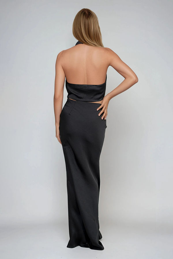 Made To Slay Halter Top and Maxi Skirt Set - Black