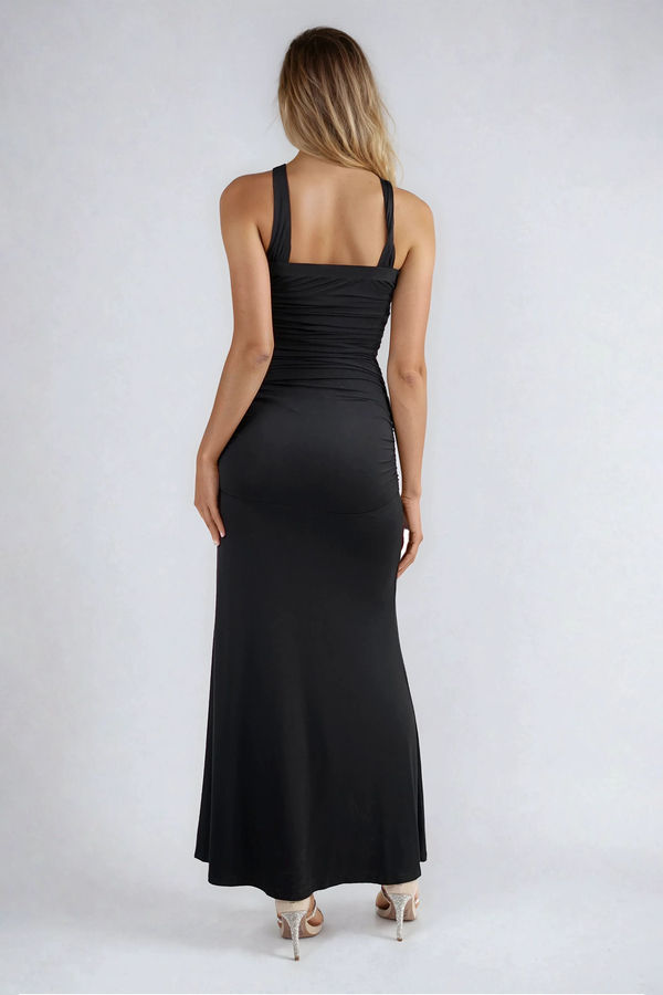 Midnight Spell Criss Cross Ring Detail Maxi Dress - Black