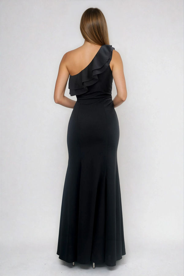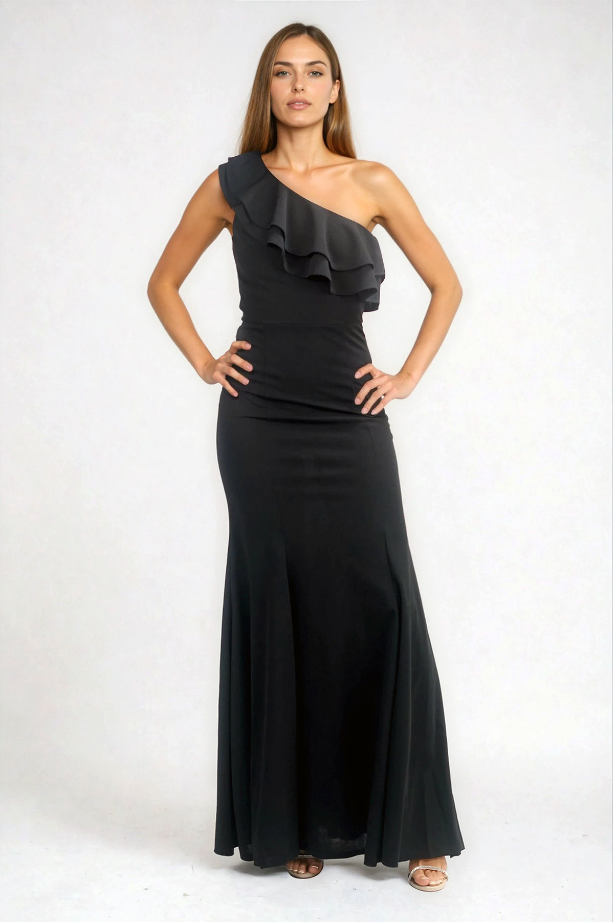 Sway in Style Ruffled One Shoulder Maxi Dress - Black