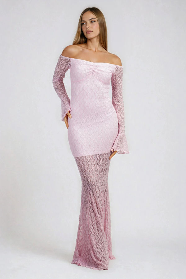 Carry the Glow Off Shoulder Mermaid Maxi Dress - Pink