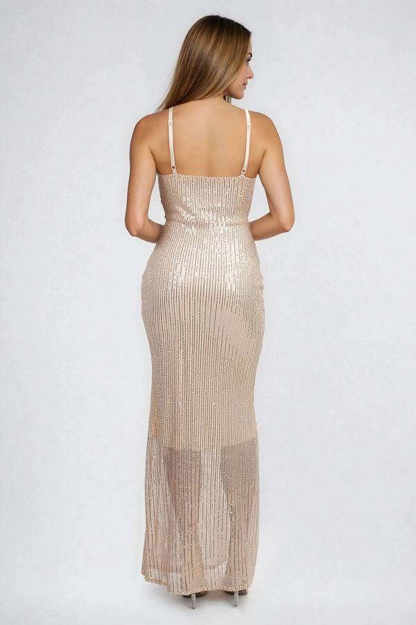 Dress The Part Sequin Bodycon Maxi Dress - Champagne