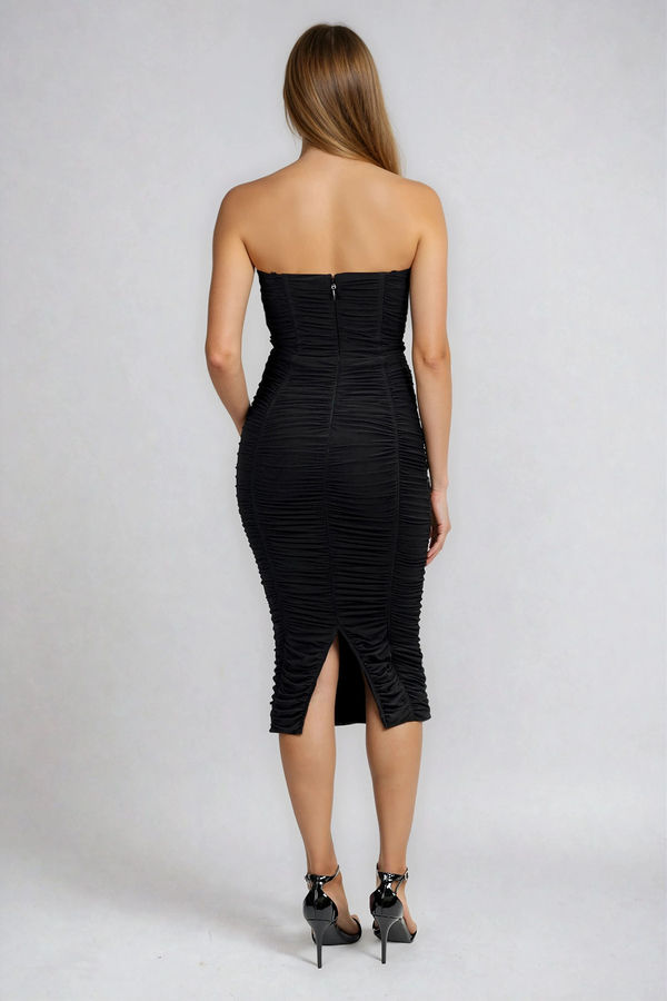 Sweet Drama Ruched Sweetheart Midi Dress - Black