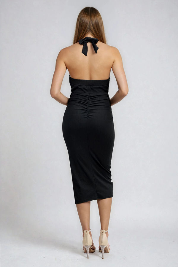 Chic with a hint of drama, the Bold Impact Halter Slit Midi Dress in Black features a modern wrap neckline and a flattering, form-skimming silhouette that shows off just enough skin. The side slit adds movement and allure, while the smooth stretch fabric keeps it comfortable and polished all night long. Perfect for cocktail parties, formal dinners, date nights, weddings, or special occasions that call for timeless elegance with a bold twist.