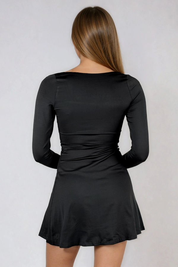 Sleigh All Day Square Neck Slit Mini Dress - Black
